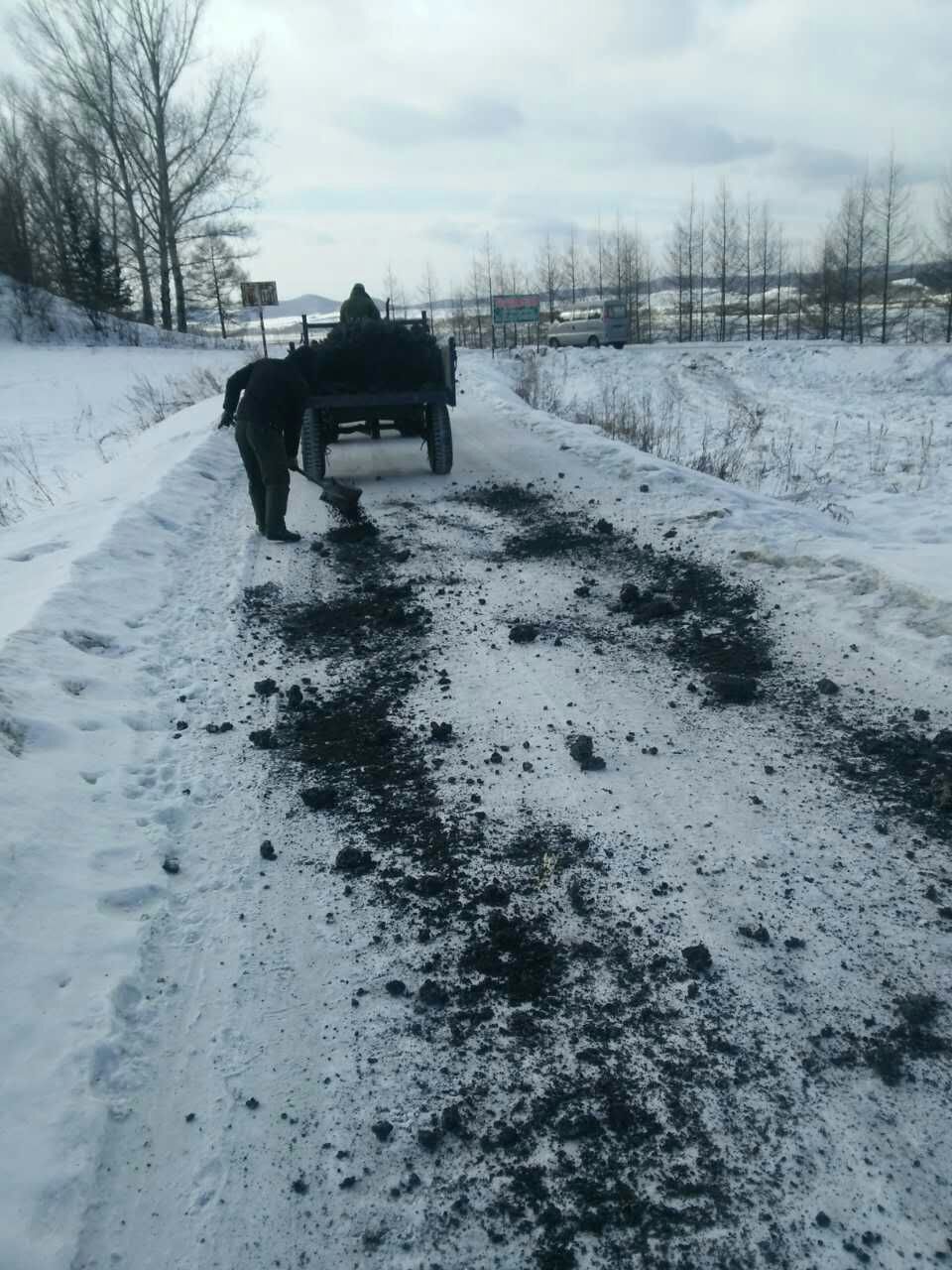 据了解,此项工作预计用时1天,用煤灰3车将共和乡主干道结冰路段铺撒完毕。